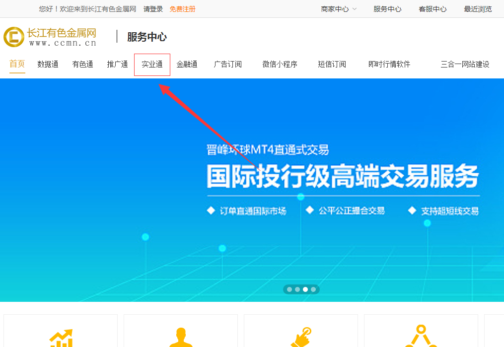 2、點擊服務(wù)中心的實業(yè)通進入實業(yè)通頁面